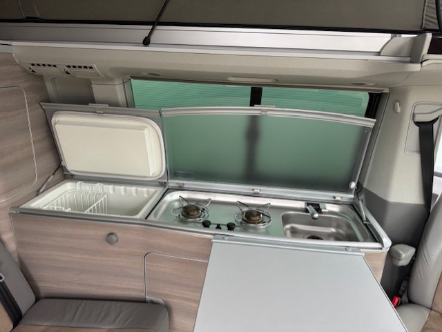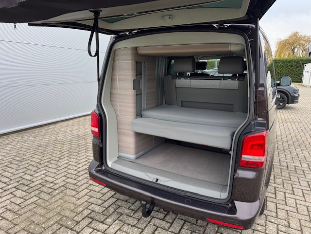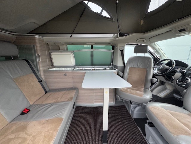 Euro Camper bied aan een, (door inruil verkregen) voor zijn leeftijd en kilometers, zeer nette VW California, met de sterke 180 pk motor met automaat en 4×4 aandrijving. Dus nooit meer vast komen te zitten in de modder op de camping !!!De vorige eigenaar heeft deze originele, van fabriek af, VW California zeer goed onderhouden en zijn er altijd zuinig op geweest wat u terug ziet aan de staat van de camper.